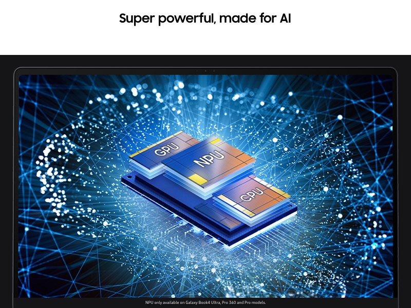Experience incredible power and AI capabilities with Galaxy Book4 Ultra. Packed with our mightiest Intel® processor yet, an NVIDIA® GeForce® RTX graphics card, and now a Neural Processing Unit (NPU),¹ for all your business tasks.