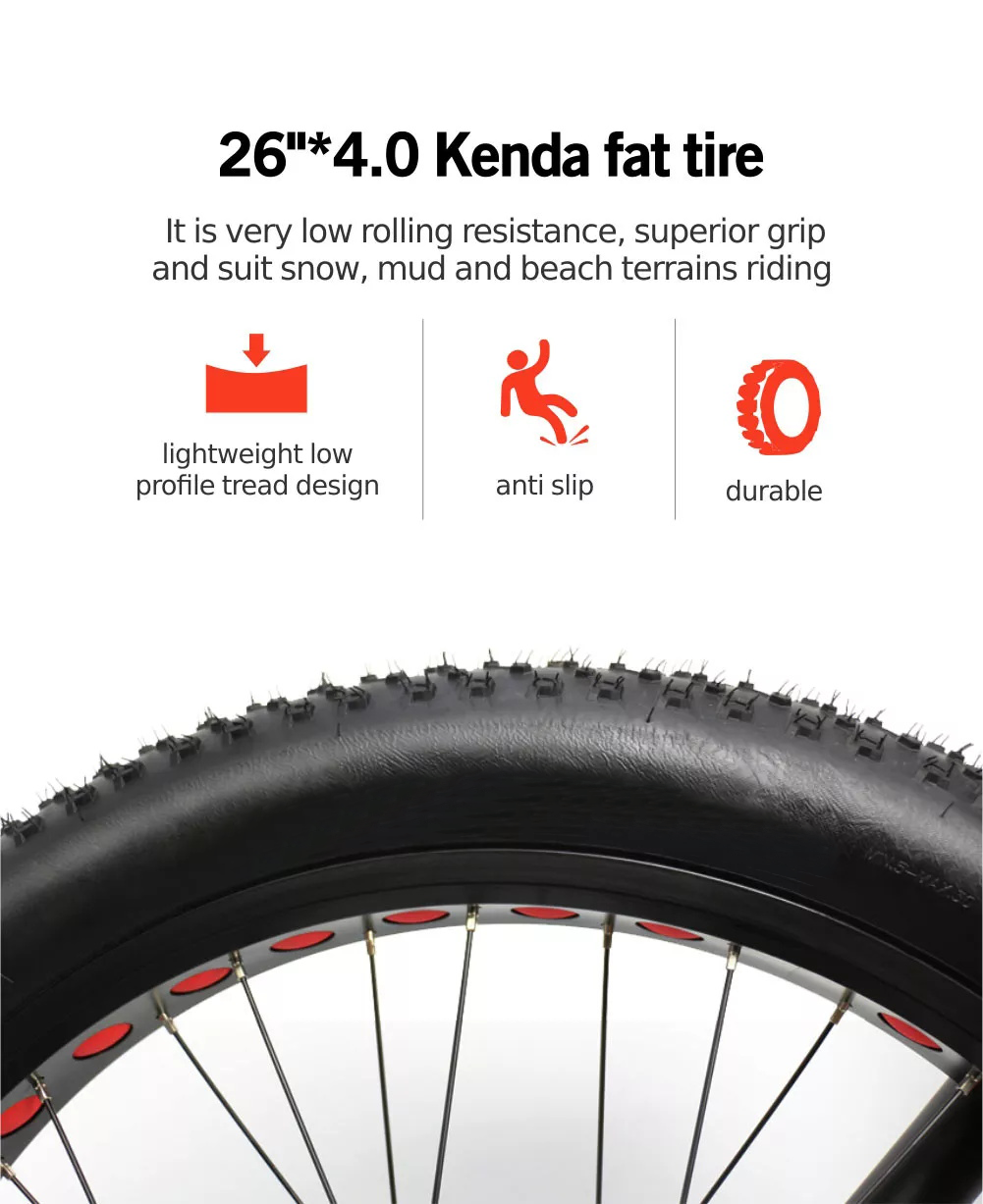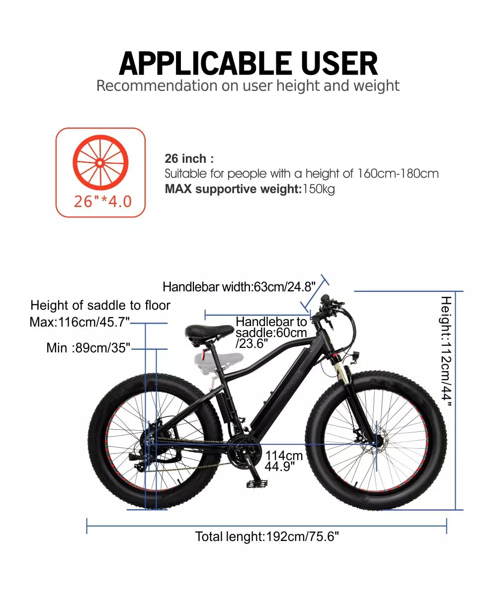 ✤ This fat tire e-bike comes with a versatile and high-quality front suspension fork that offers better shock absorption, greater durability, faster riding speed and less drag. It can cope with various road conditions, and you can adjust the proper driving speed to your needs to complete your journey. Not only for steep mountain bike riding, but also for city riding and commuting.