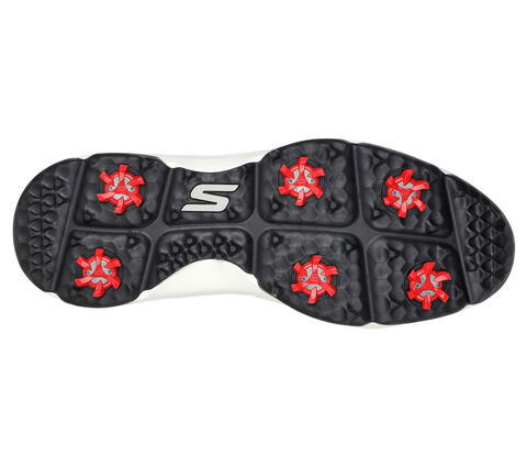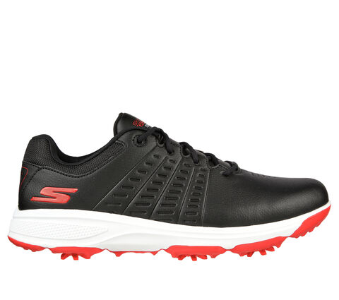 Handle the course in supportive comfort and smooth style with Skecththers GO GOLF® Elite 5 - GF. This waterproof lace-up golf design features a quarter embossed synthetic upper with a removable Arch Fit® insole and lightweight ULTRA FLIGHT® cushioning.