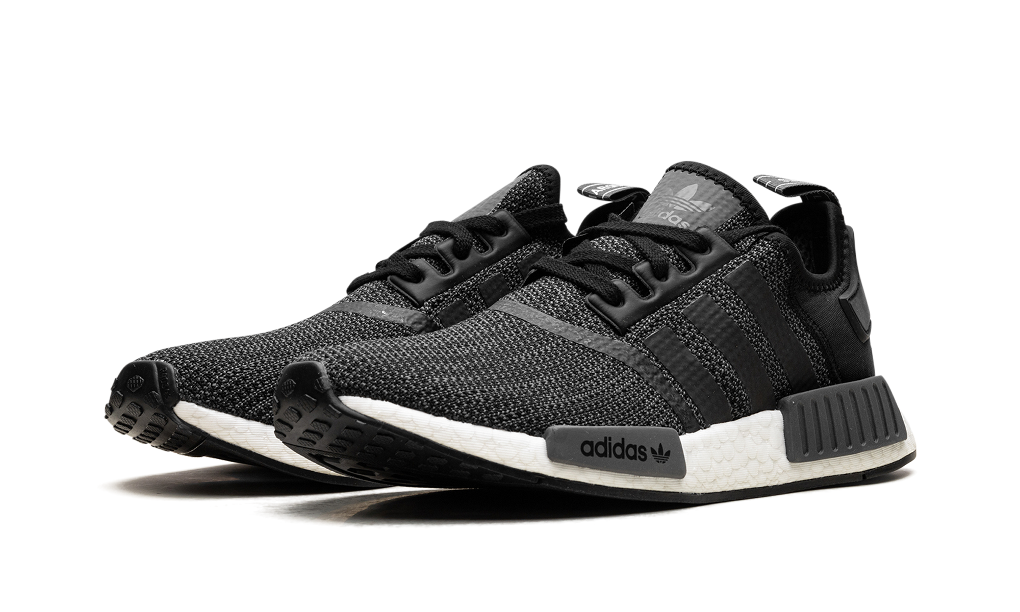 The adithtdas NMD R1 bridges the gap between tech performance and streetwear style. The NMD R1 has a mesh upper that gives it a unique texture while also delivering a sock-like fit. Different shades of black are deployed on the upper to give the sneaker a dynamic visual appeal that is complemented by the white Boost midsole and the NMD's signature EVA plugs. Core Black Carbon