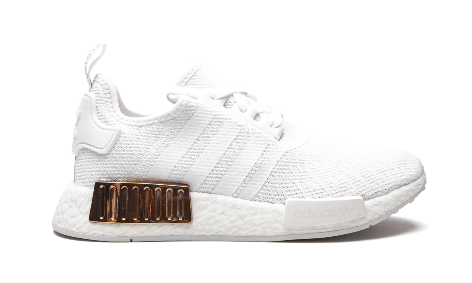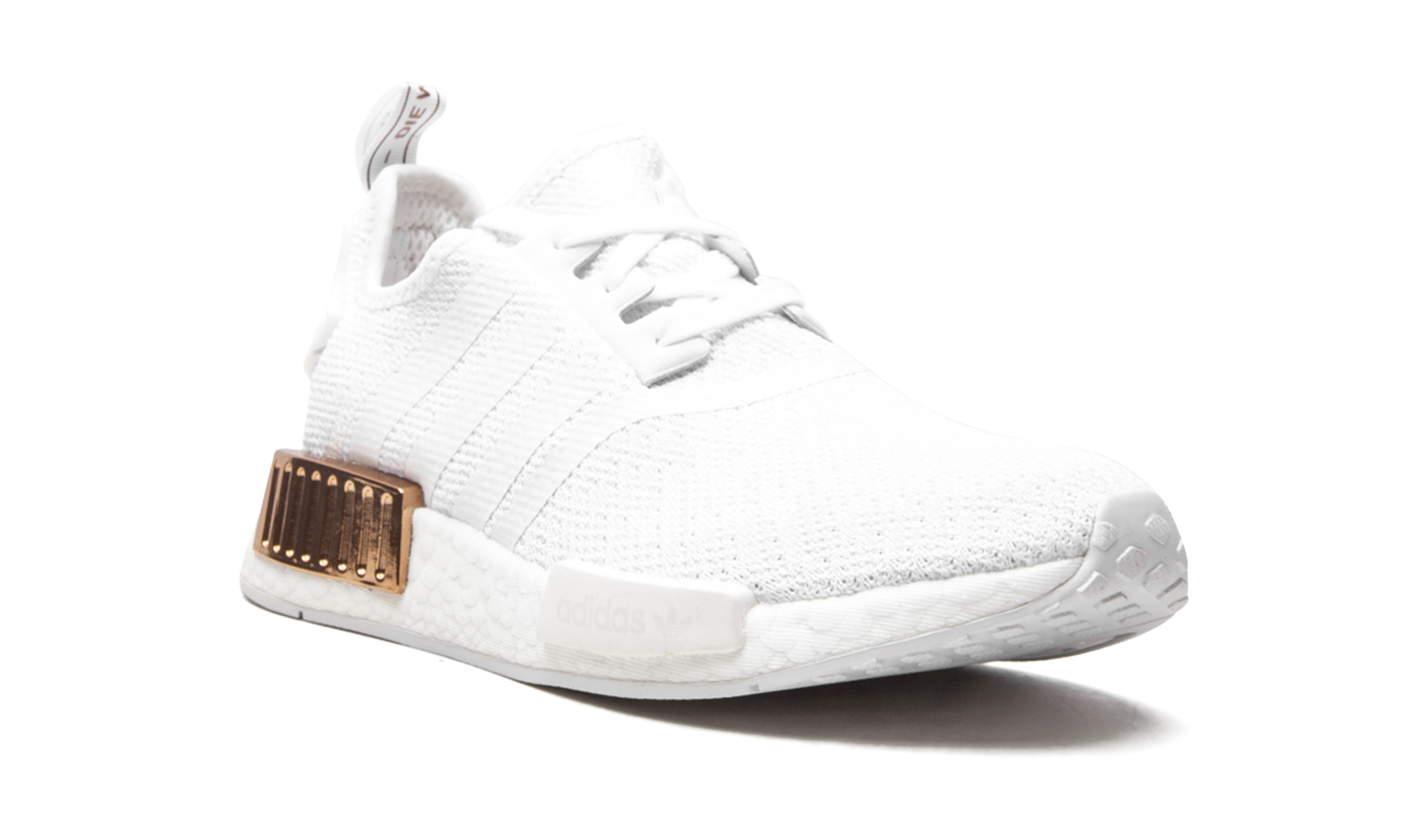 This adithtdas NMD_R1 is a women's exclusive style that plays up the "white sneaker" look in a sophisticated way. On the closely-weaved Primeknit upper, you see nothing but white with a completely monochrome look on the material, Three Stripes, laces, and heel detail. A white Boost midsole coordinates with the outsole and a front EVA plug of the same color. Then, without warning, copper metallic finish covers the back EVA plug and text on the wordmark heel stripe??giving the all-white look the oomph it needs to make it unique. White / Copper Metallic