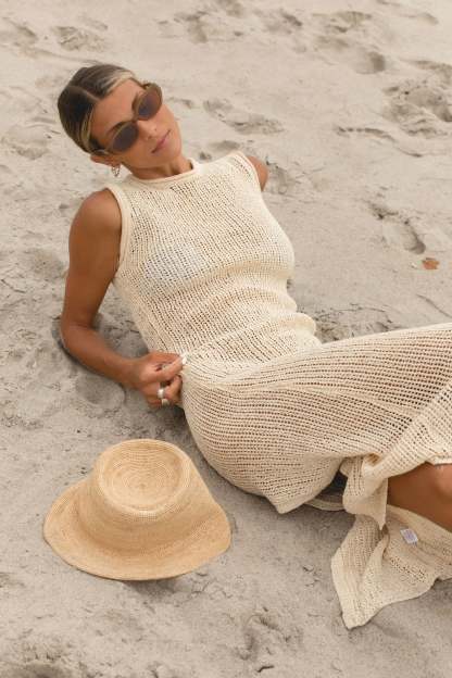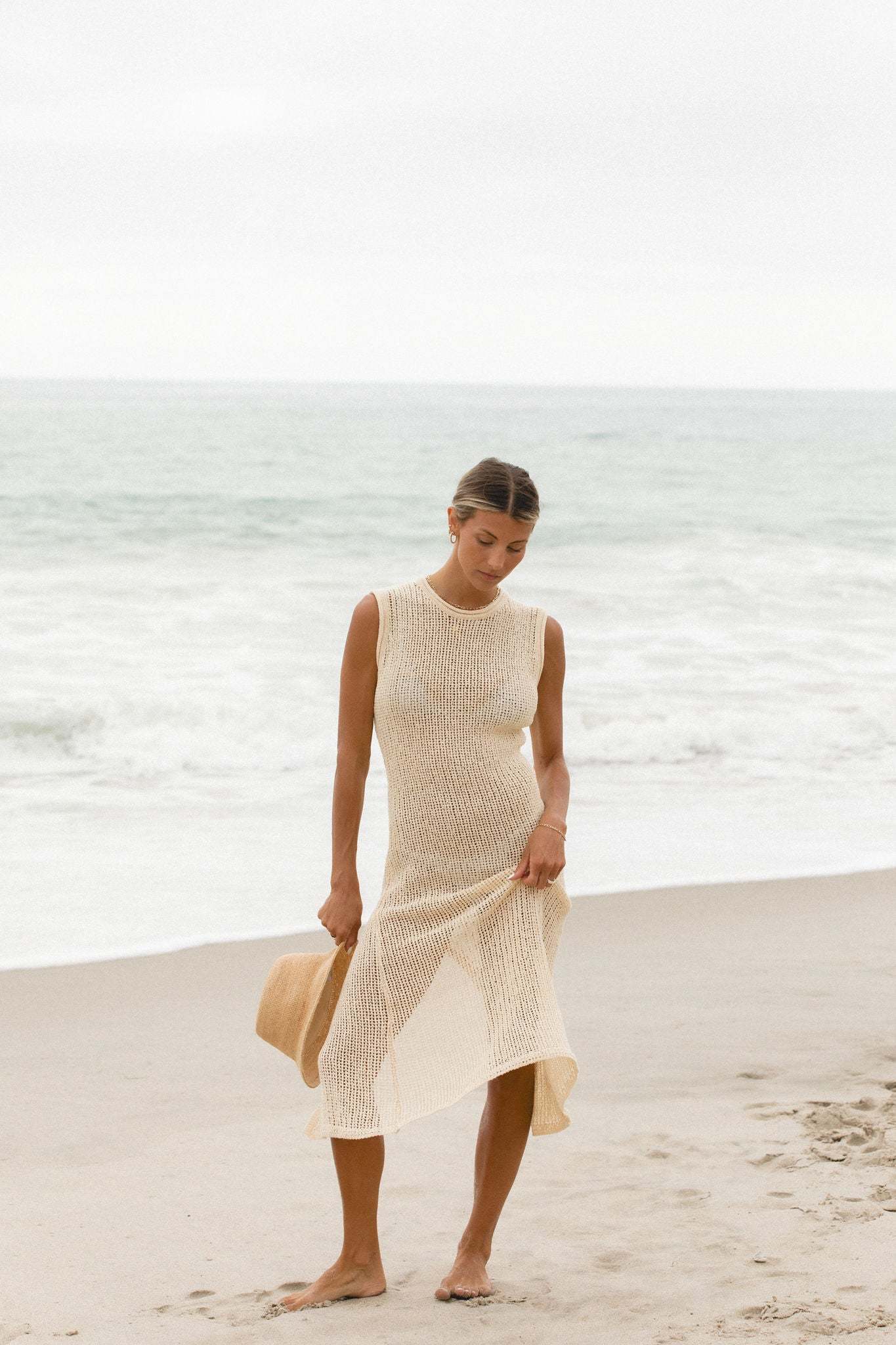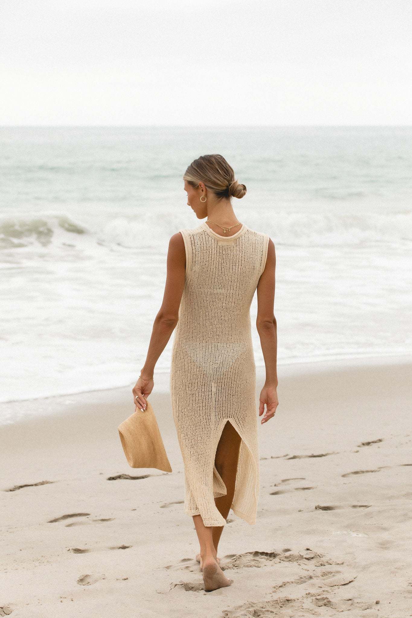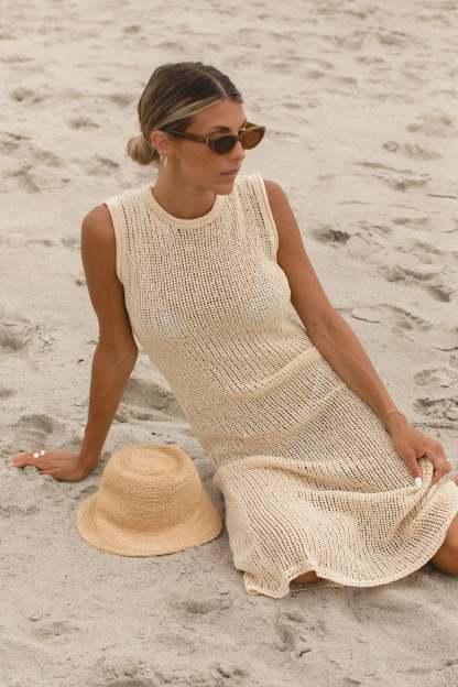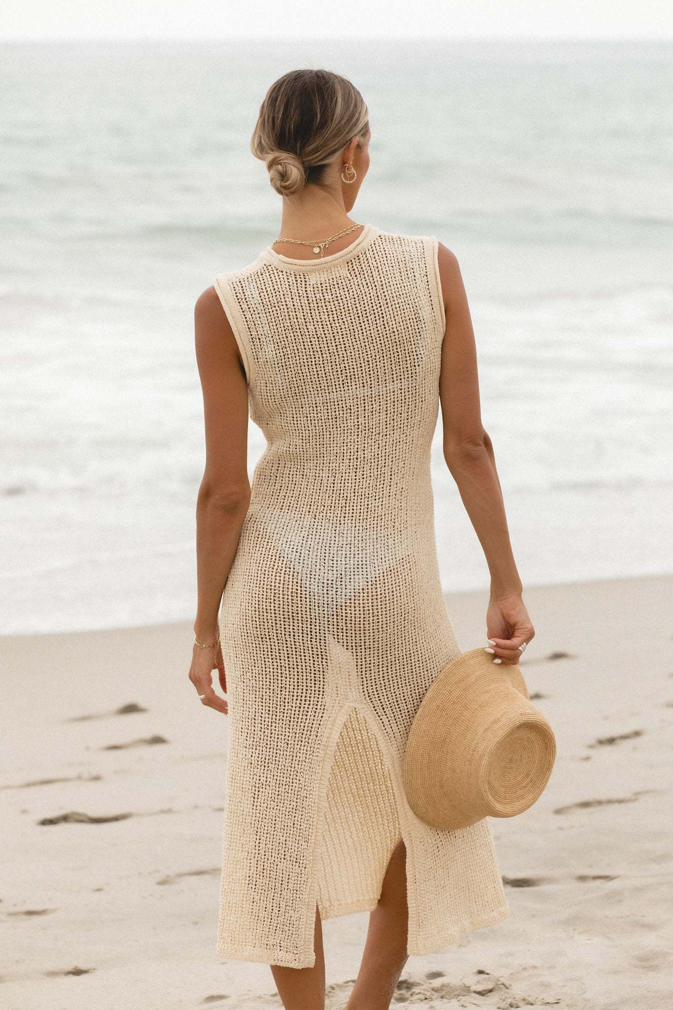 The Dolce Vita Cotton Knit Dress features an open knit design. Wear it over a swimsuit at the beach or pool as a cover-up. Made with soft cotton material for a breathable and lightweight feel.