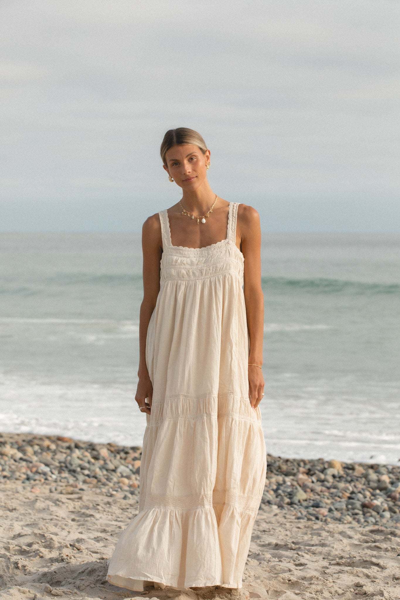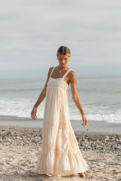 This Salt and Sea Woven Cotton Gauze Dress is designed with a billowy tiered silhouette and delicate lace detailing. Made from lightweight gauze fabric, it offers effortless elegance and comfort.